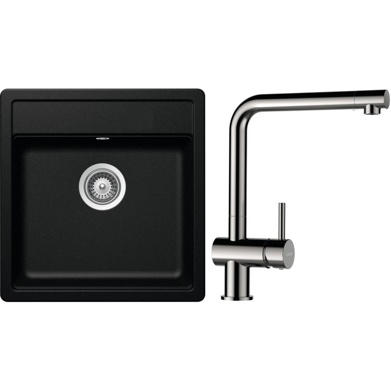 Cenově zvýhodněný set dřezu a baterie Schock S10-3 - obsahuje granitový jednodřez Mono N-100S Magma a baterii Epos Nerezový vzhled.