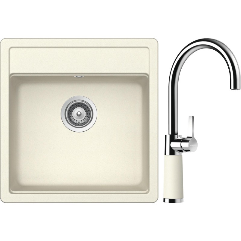 Cenově zvýhodněný set dřezu a baterie Schock S10-6 - obsahuje granitový jednodřez Mono N-100S Magnolia a baterii SC-520 Magnolia.