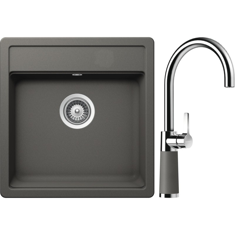 Cenově zvýhodněný set dřezu a baterie Schock S10-6 - obsahuje granitový jednodřez Mono N-100S Silverstone a baterii SC-520 Silverstone.