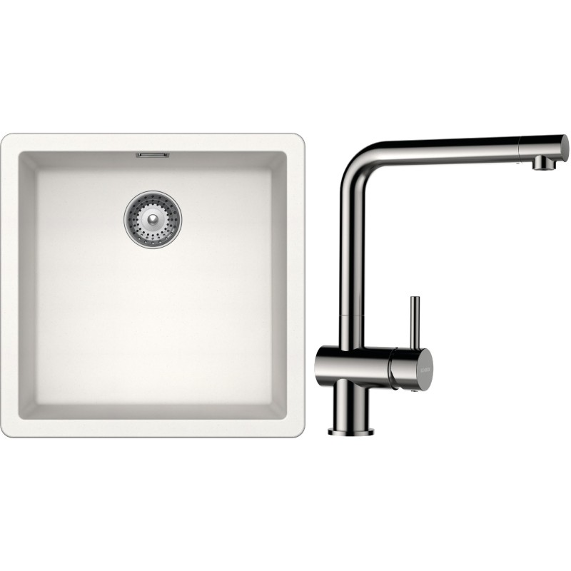 Cenově zvýhodněný set dřezu a baterie Schock S11-3 - obsahuje granitový jednodřez Greenwich N-100 Polaris a baterii Epos Nerezový vzhled.
