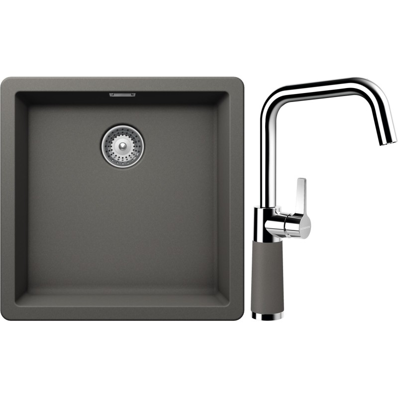 Cenově zvýhodněný set dřezu a baterie Schock S11-8 - obsahuje granitový jednodřez Greenwich N-100 Silverstone a baterii SC-530 Silverstone.