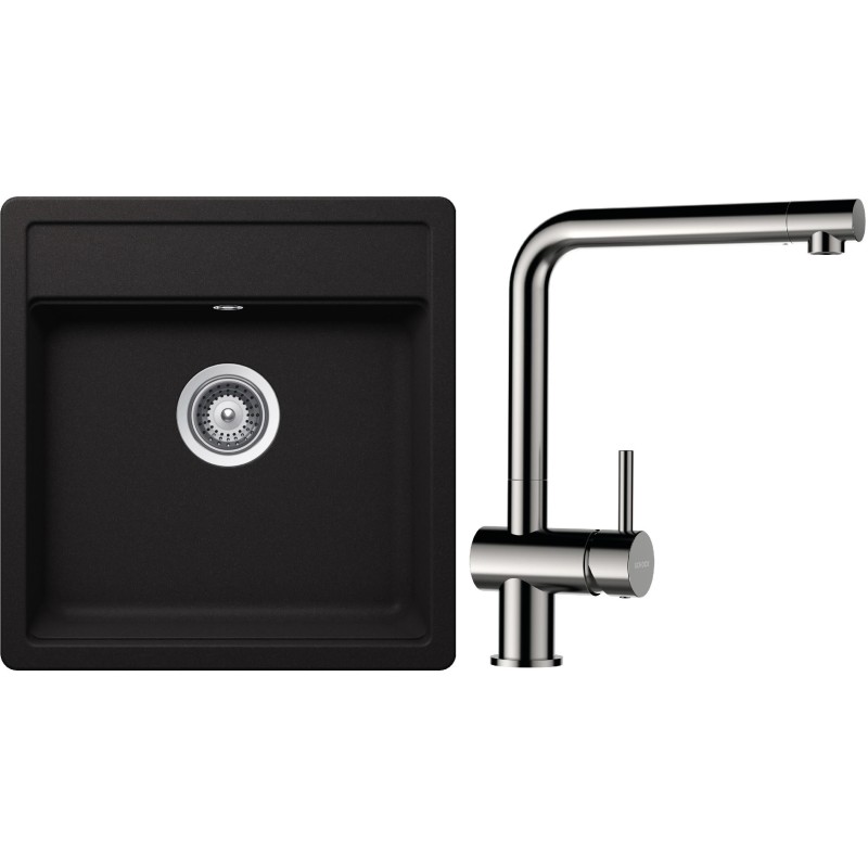 Cenově zvýhodněný set dřezu a baterie Schock S23-5 - obsahuje granitový jednodřez Nemo N-100S Nero a baterii Epos Nerezový vzhled.