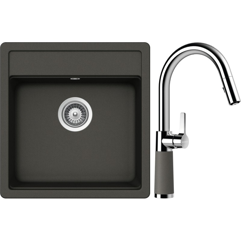 Cenově zvýhodněný set dřezu a baterie Schock S23-9 - obsahuje granitový jednodřez Nemo N-100S Asphalt a baterii se sprchou SC-520.120 Asphalt.