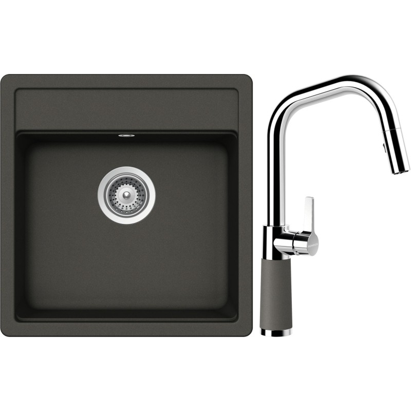 Cenově zvýhodněný set dřezu a baterie Schock S23-11 - obsahuje granitový jednodřez Nemo N-100S Asphalt a baterii se sprchou SC-530.120 Asphalt.
