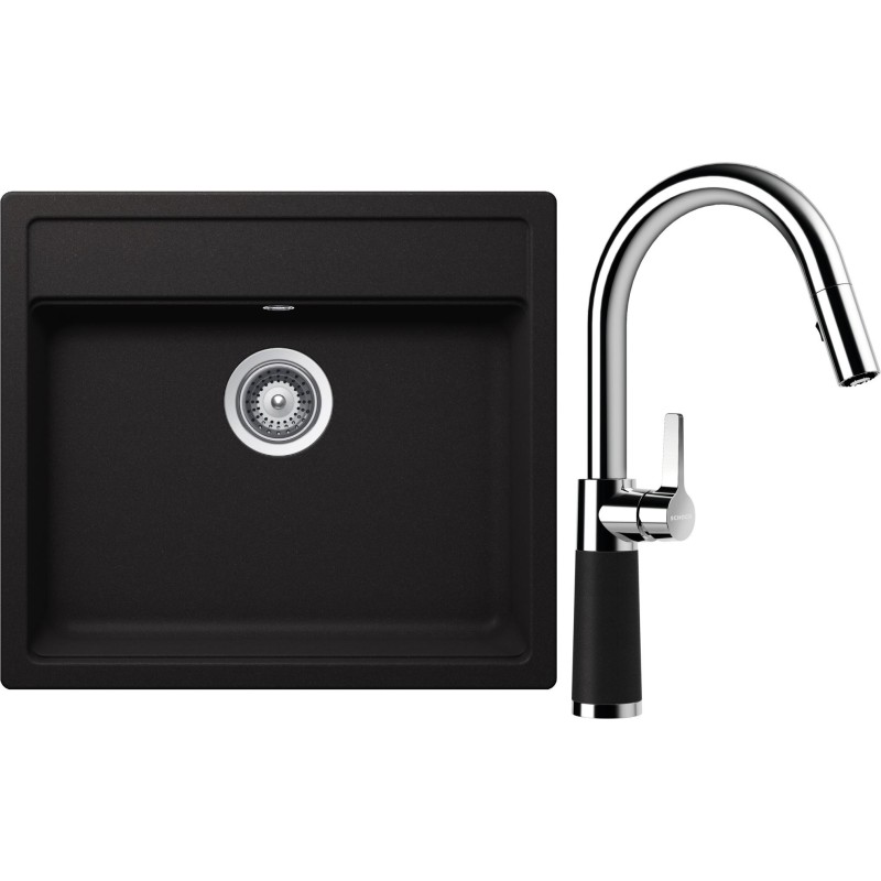 Cenově zvýhodněný set dřezu a baterie Schock S24-9 - obsahuje granitový jednodřez Nemo N-100 Nero a baterii se sprchou SC-520.120 Nero.