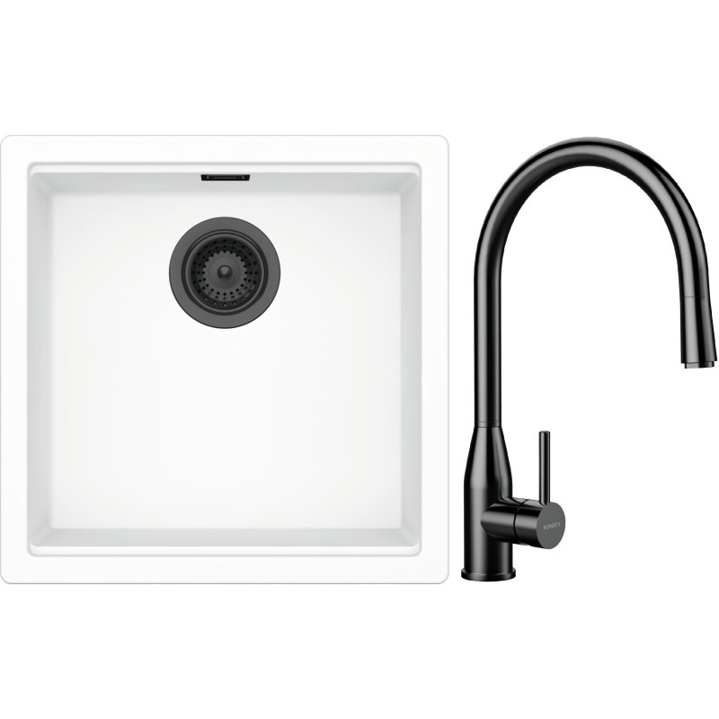 Cenově zvýhodněný set dřezu a baterie Schock S31-10 - obsahuje granitový jednodřez Kiruna N-100 Day, baterii s vytahovací koncovkou Kavus.120 Gunmetal brushed a části dřezu v provedení Gunmetal brushed.