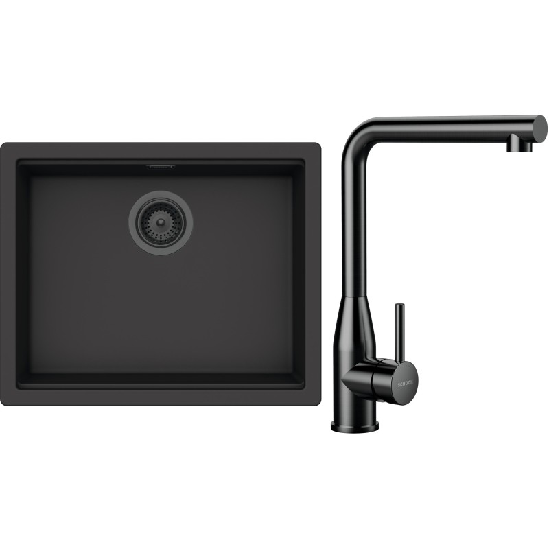 Cenově zvýhodněný set dřezu a baterie Schock S32-15 - obsahuje granitový jednodřez Kiruna N-100L Dusk, baterii Keto Gunmetal brushed a části dřezu v provedení Gunmetal brushed.
