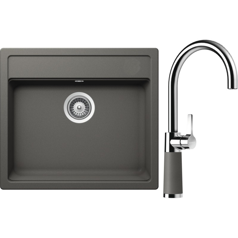 Cenově zvýhodněný set dřezu a baterie Schock S9-6 - obsahuje granitový jednodřez Mono N-100 Silverstone a baterii SC-520 Silverstone.