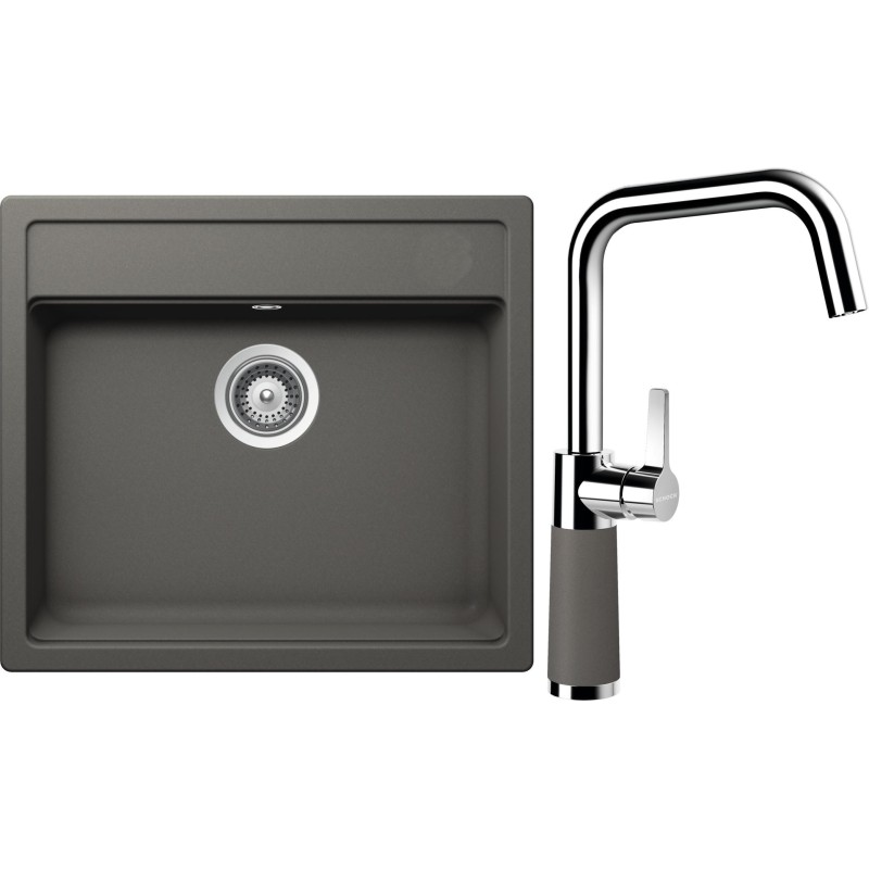 Cenově zvýhodněný set dřezu a baterie Schock S9-8 - obsahuje granitový jednodřez Mono N-100 Silverstone a baterii SC-530 Silverstone.