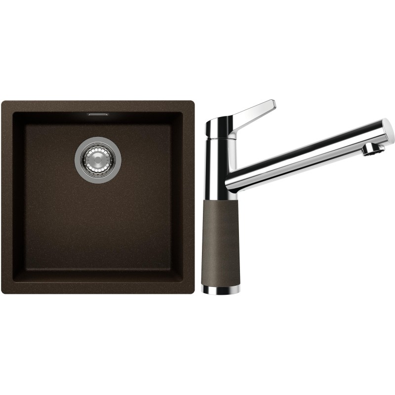 Cenově zvýhodněný set dřezu a baterie Schock S13-4 - obsahuje granitový jednodřez Kaia N-100 Bronze a baterii SC-510 Bronze.