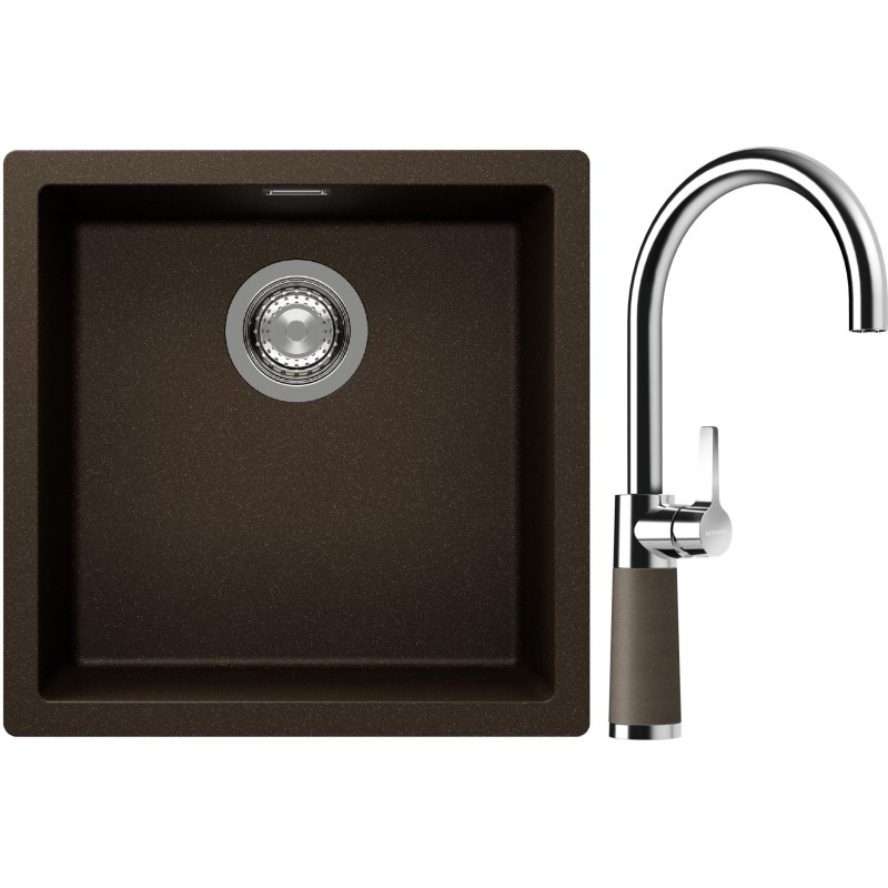 Cenově zvýhodněný set dřezu a baterie Schock S13-6 - obsahuje granitový jednodřez Kaia N-100 Bronze a baterii SC-520 Bronze.