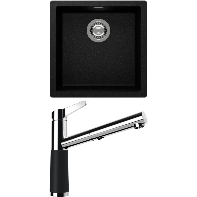 Cenově zvýhodněný set dřezu a baterie Schock S13-5 - obsahuje granitový jednodřez Kaia N-100 Magma a baterii se sprchou SC-510.120 Magma.
