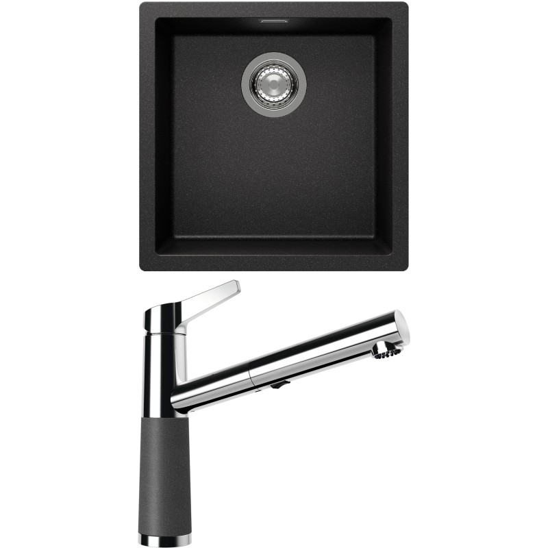 Cenově zvýhodněný set dřezu a baterie Schock S13-5 - obsahuje granitový jednodřez Kaia N-100 Stone a baterii se sprchou SC-510.120 Stone.