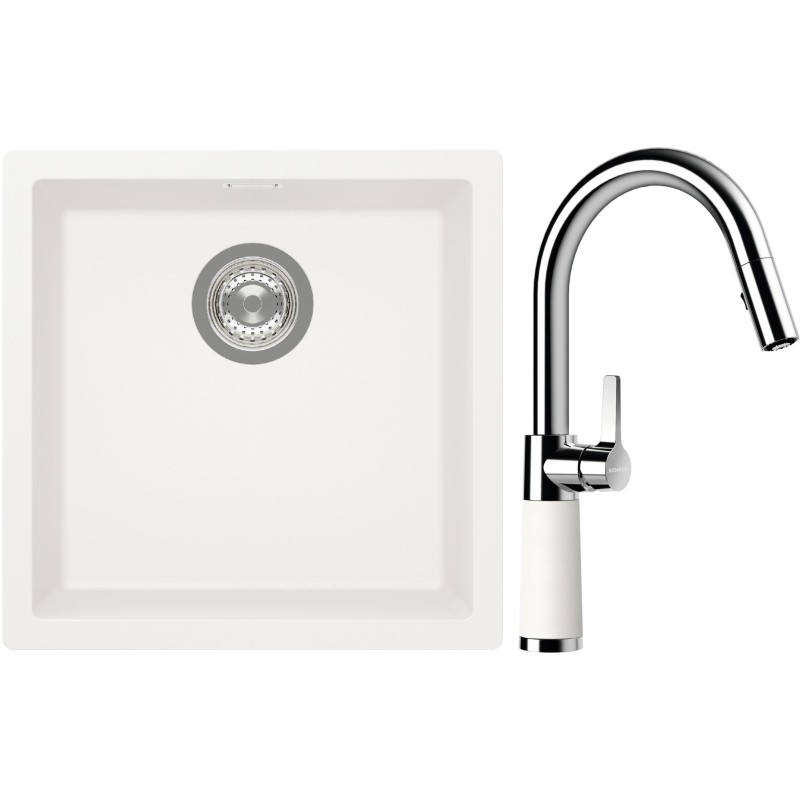 Cenově zvýhodněný set dřezu a baterie Schock S13-7 - obsahuje granitový jednodřez Kaia N-100 Polaris a baterii se sprchou SC-520.120 Polaris.