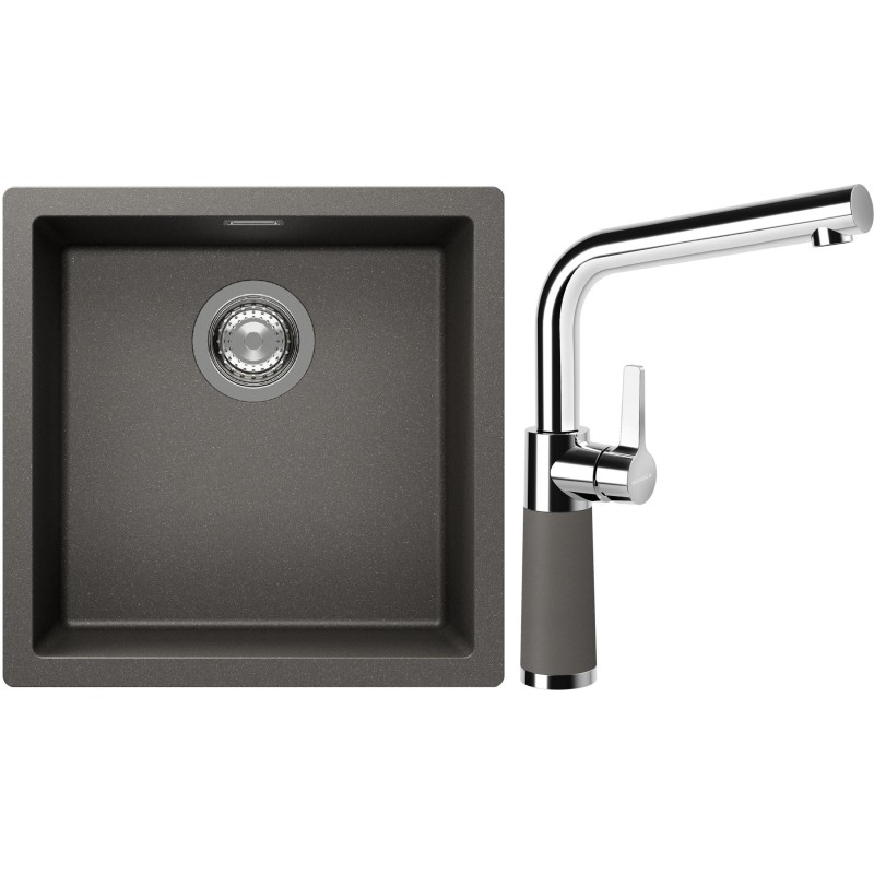 Cenově zvýhodněný set dřezu a baterie Schock S13-10 - obsahuje granitový jednodřez Kaia N-100 Silverstone a baterii SC-540 Silverstone.