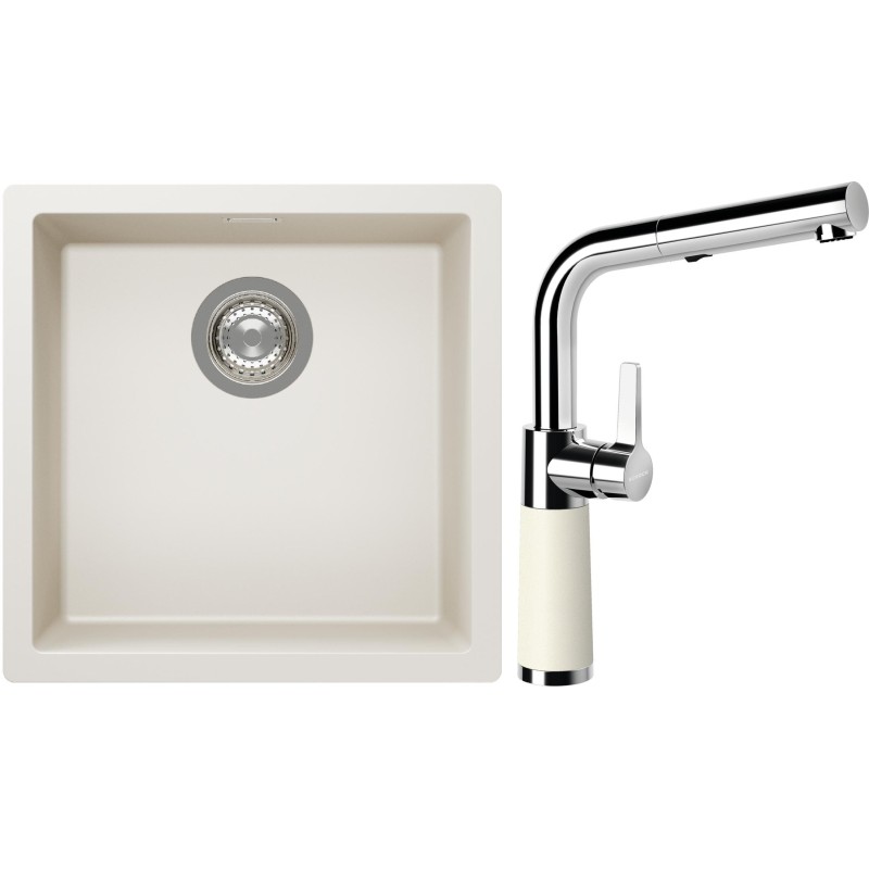 Cenově zvýhodněný set dřezu a baterie Schock S13-11 - obsahuje granitový jednodřez Kaia N-100 Magnolia a baterii se sprchou SC-540.120 Magnolia.