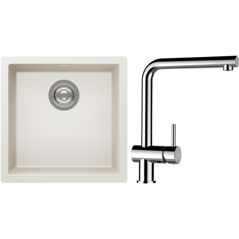 Cenově zvýhodněný set dřezu a baterie Schock S13-12 - obsahuje granitový jednodřez Kaia N-100 Magnolia a baterii Epos Chrom.