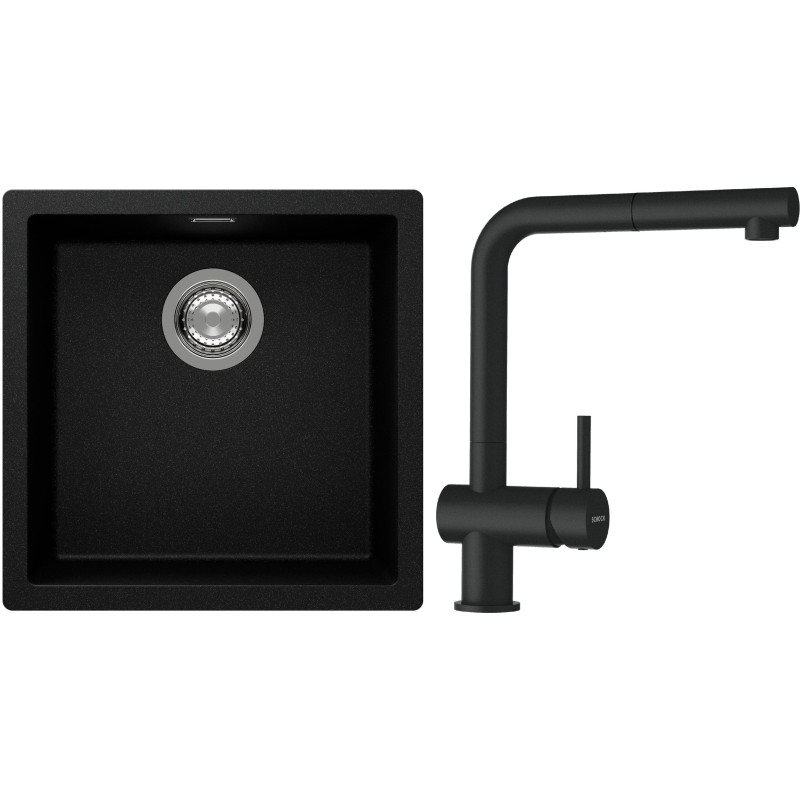 Cenově zvýhodněný set dřezu a baterie Schock S13-2 - obsahuje granitový jednodřez Kaia N-100 Magma a baterii s vytahovací koncovkou Epos.120 Magma.