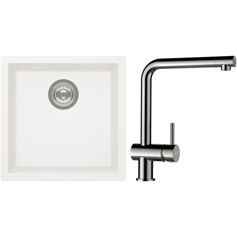 Cenově zvýhodněný set dřezu a baterie Schock S13-3 - obsahuje granitový jednodřez Kaia N-100 Polaris a baterii Epos Nerezový vzhled.