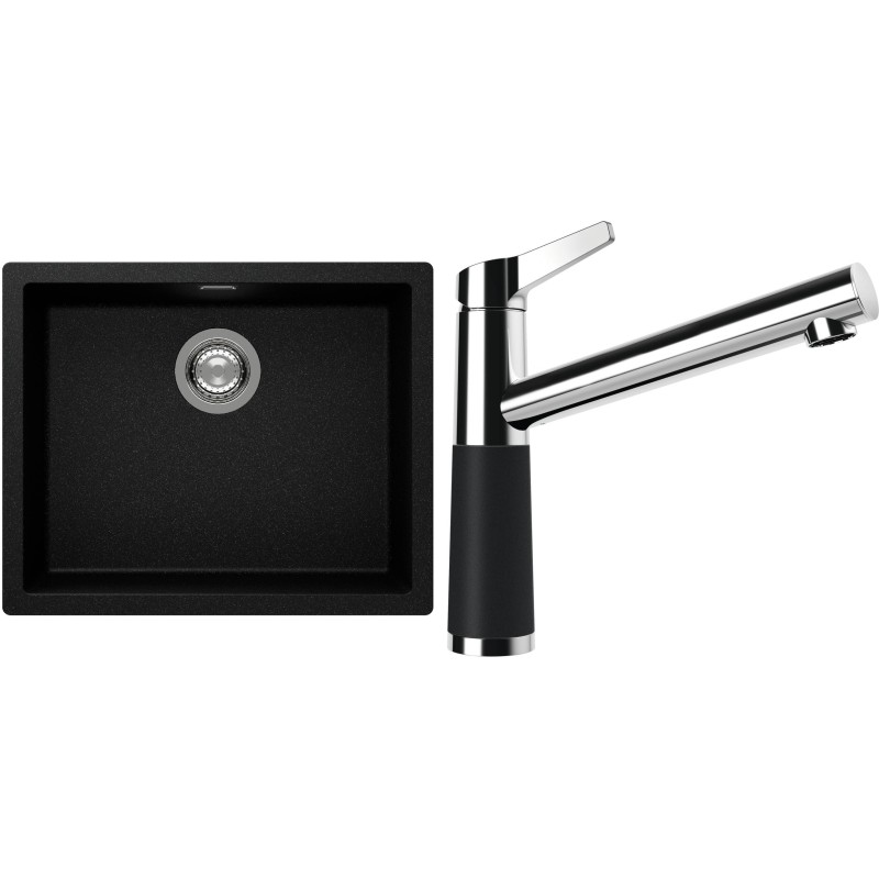 Cenově zvýhodněný set dřezu a baterie Schock S14-4 - obsahuje granitový jednodřez Kaia N-100L Magma a baterii SC-510 Magma.