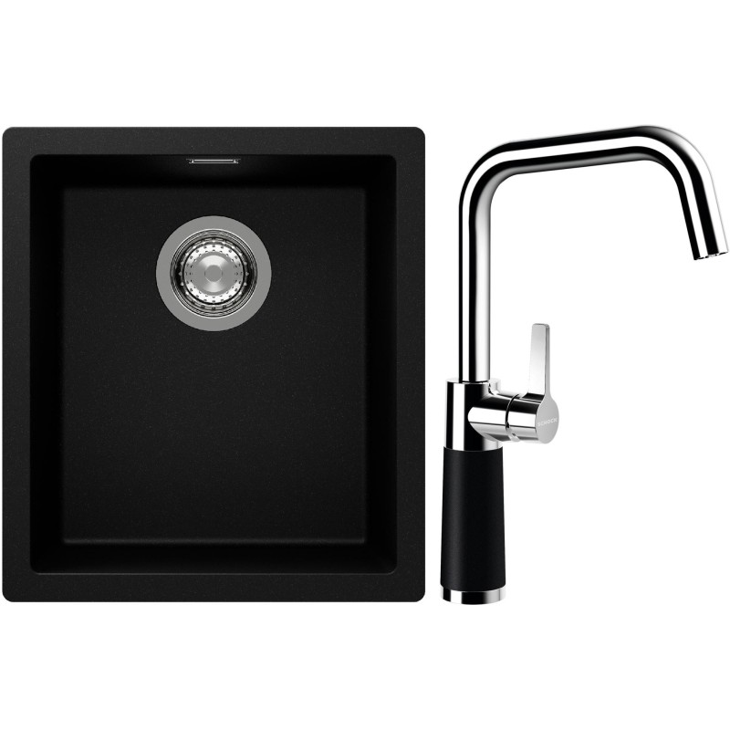 Cenově zvýhodněný set dřezu a baterie Schock S12-8 - obsahuje granitový jednodřez Kaia N-100S Puro a baterii SC-530 Puro.
