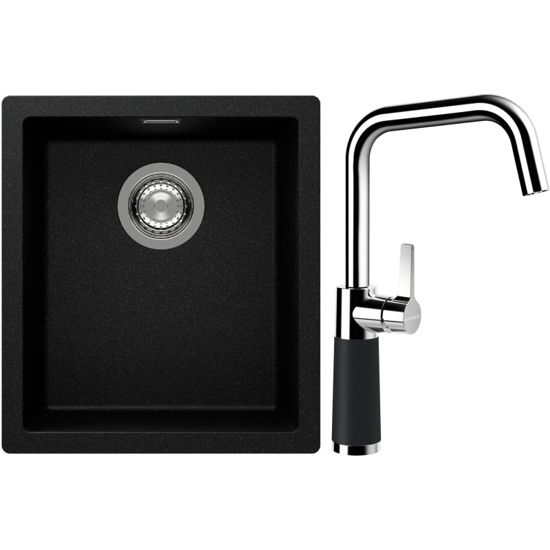 Cenově zvýhodněný set dřezu a baterie Schock S12-8 - obsahuje granitový jednodřez Kaia N-100S Magma a baterii SC-530 Magma.