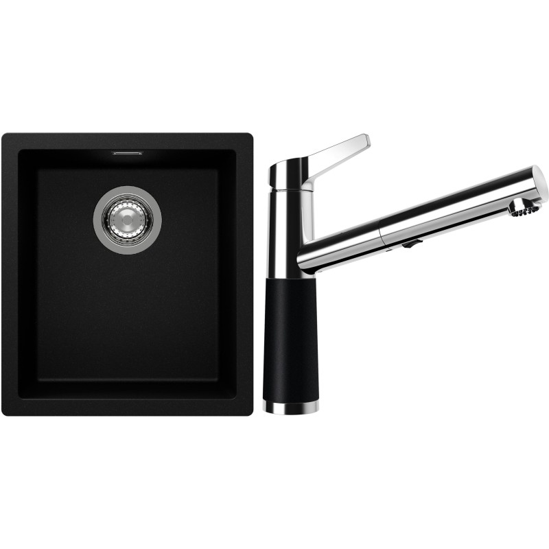 Cenově zvýhodněný set dřezu a baterie Schock S12-5 - obsahuje granitový jednodřez Kaia N-100S Puro a baterii se sprchou SC-510.120 Puro.