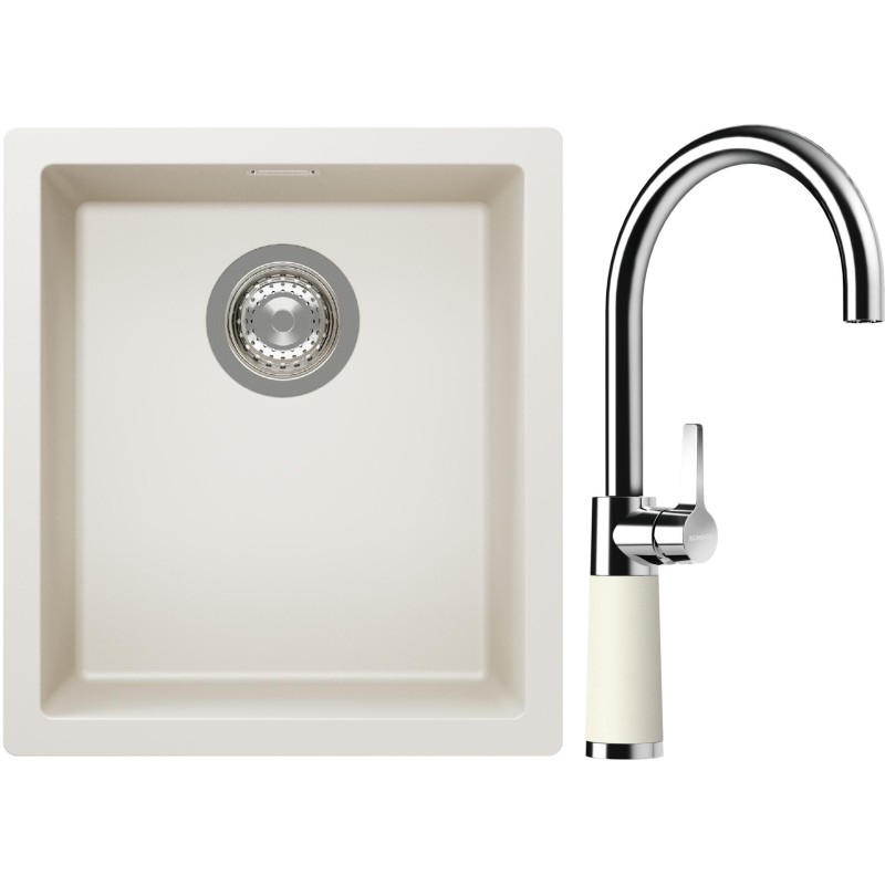Cenově zvýhodněný set dřezu a baterie Schock S12-6 - obsahuje granitový jednodřez Kaia N-100S Magnolia a baterii SC-520 Magnolia.