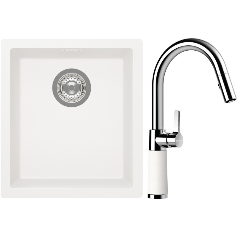 Cenově zvýhodněný set dřezu a baterie Schock S12-7 - obsahuje granitový jednodřez Kaia N-100S Polaris a baterii se sprchou SC-520.120 Polaris.
