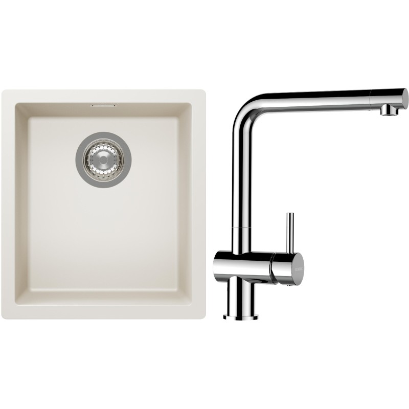 Cenově zvýhodněný set dřezu a baterie Schock S12-12 - obsahuje granitový jednodřez Kaia N-100S Magnolia a baterii Epos Chrom.