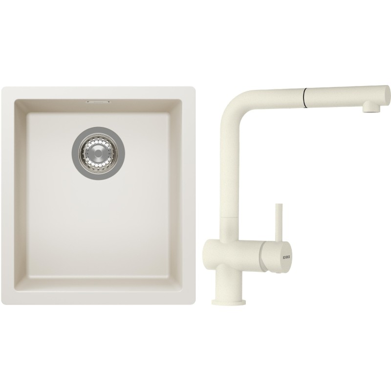 Cenově zvýhodněný set dřezu a baterie Schock S12-2 - obsahuje granitový jednodřez Kaia N-100S Magnolia a baterii s vytahovací koncovkou Epos.120 Magnolia.