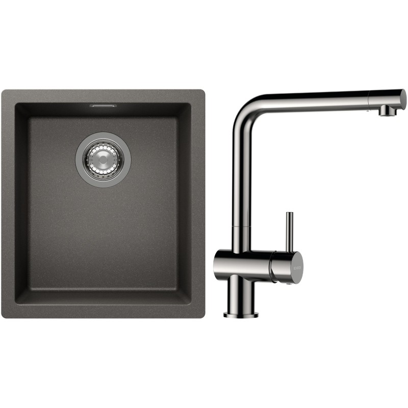 Cenově zvýhodněný set dřezu a baterie Schock S12-3 - obsahuje granitový jednodřez Kaia N-100S Silverstone a baterii Epos Nerezový vzhled.