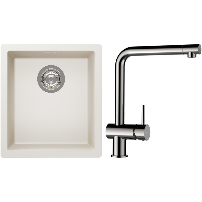 Cenově zvýhodněný set dřezu a baterie Schock S12-3 - obsahuje granitový jednodřez Kaia N-100S Magnolia a baterii Epos Nerezový vzhled.