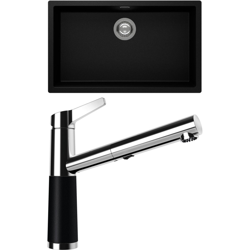 Cenově zvýhodněný set dřezu a baterie Schock S15-5 - obsahuje granitový jednodřez Kaia N-100XL Puro a baterii se sprchou SC-510.120 Puro.