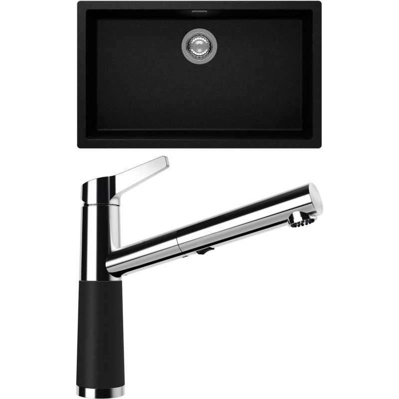 Cenově zvýhodněný set dřezu a baterie Schock S15-5 - obsahuje granitový jednodřez Kaia N-100XL Magma a baterii se sprchou SC-510.120 Magma.