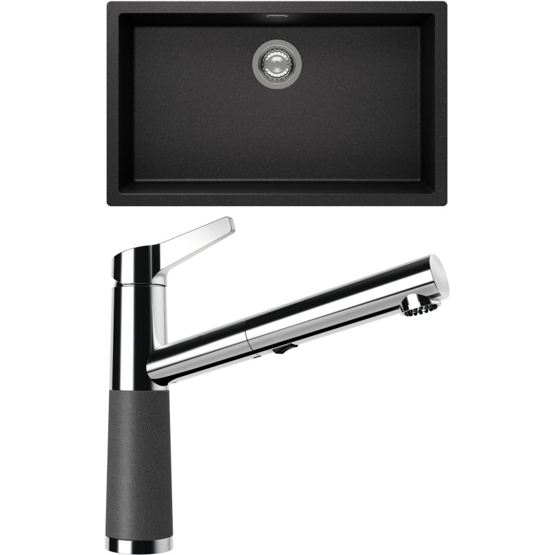 Cenově zvýhodněný set dřezu a baterie Schock S15-5 - obsahuje granitový jednodřez Kaia N-100XL Stone a baterii se sprchou SC-510.120 Stone.