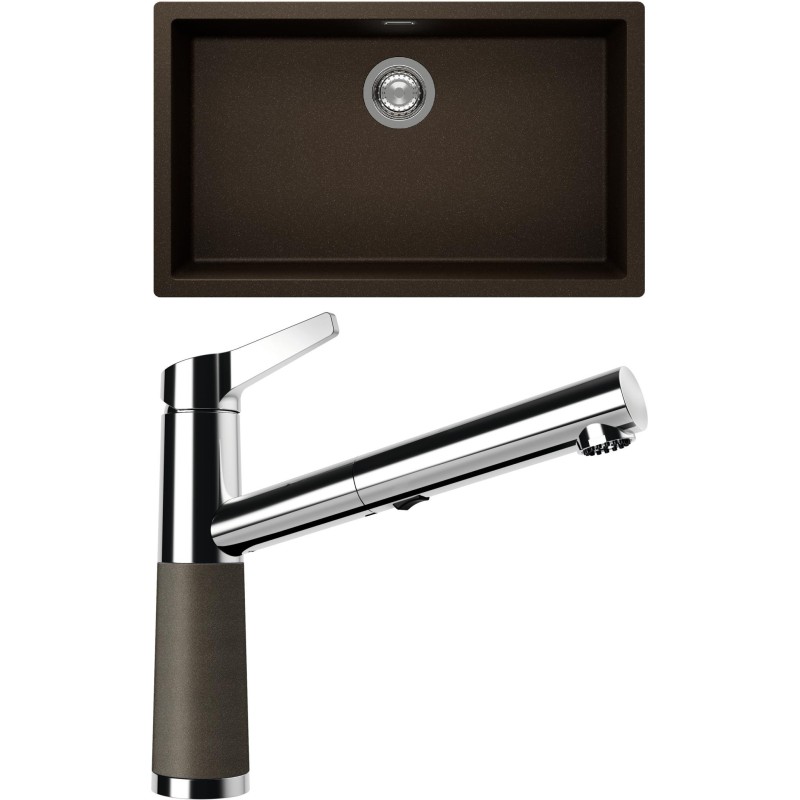 Cenově zvýhodněný set dřezu a baterie Schock S15-5 - obsahuje granitový jednodřez Kaia N-100XL Bronze a baterii se sprchou SC-510.120 Bronze.