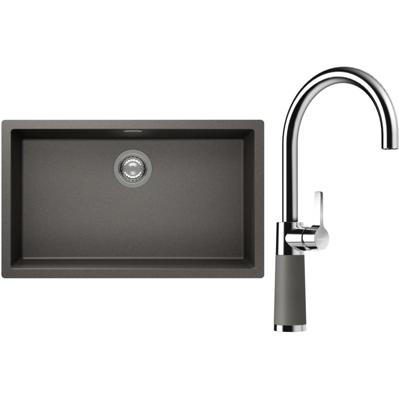 Cenově zvýhodněný set dřezu a baterie Schock S15-6 - obsahuje granitový jednodřez Kaia N-100XL Silverstone a baterii SC-520 Silverstone.
