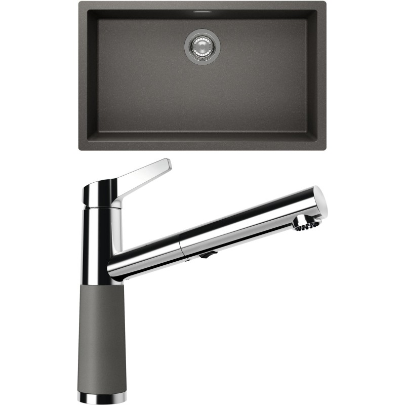 Cenově zvýhodněný set dřezu a baterie Schock S15-5 - obsahuje granitový jednodřez Kaia N-100XL Silverstone a baterii se sprchou SC-510.120 Silverstone.