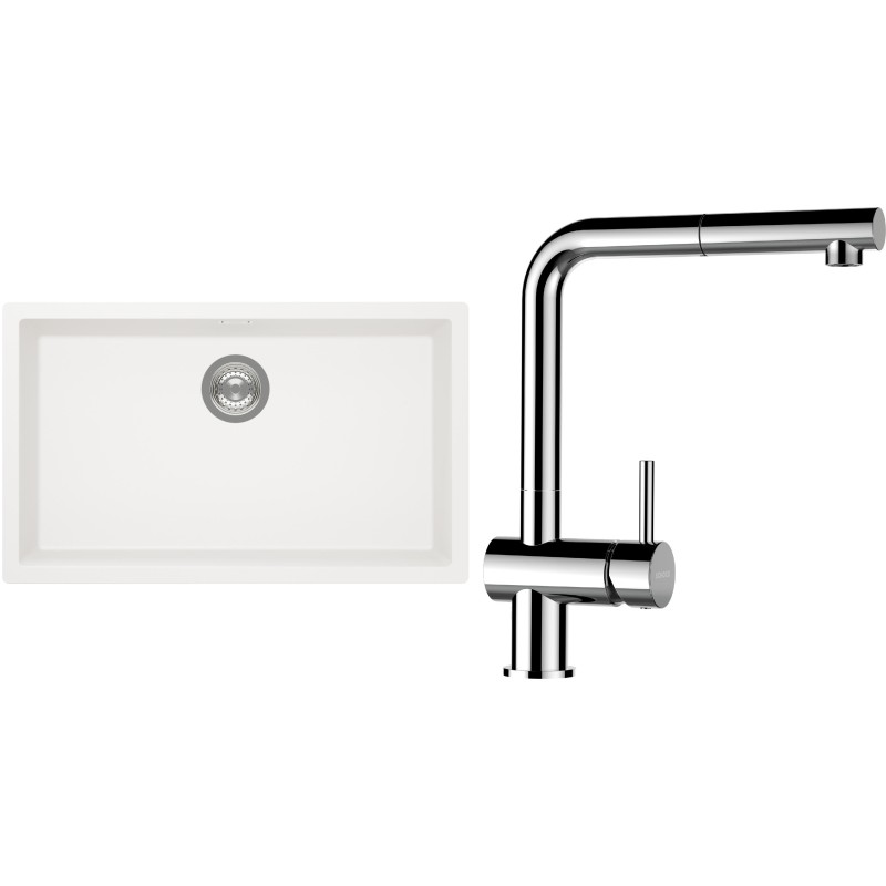 Cenově zvýhodněný set dřezu a baterie Schock S15-13 - obsahuje granitový jednodřez Kaia N-100XL Polaris a baterii s vytahovací koncovkou Epos.120 Chrom.