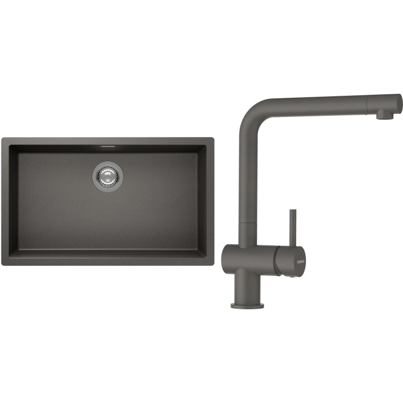 Cenově zvýhodněný set dřezu a baterie Schock S15-1 - obsahuje granitový jednodřez Kaia N-100XL Silverstone a baterii Epos Silverstone.
