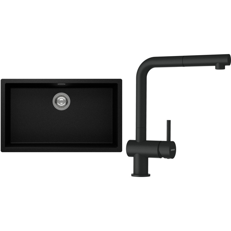 Cenově zvýhodněný set dřezu a baterie Schock S15-2 - obsahuje granitový jednodřez Kaia N-100XL Magma a baterii s vytahovací koncovkou Epos.120 Magma.
