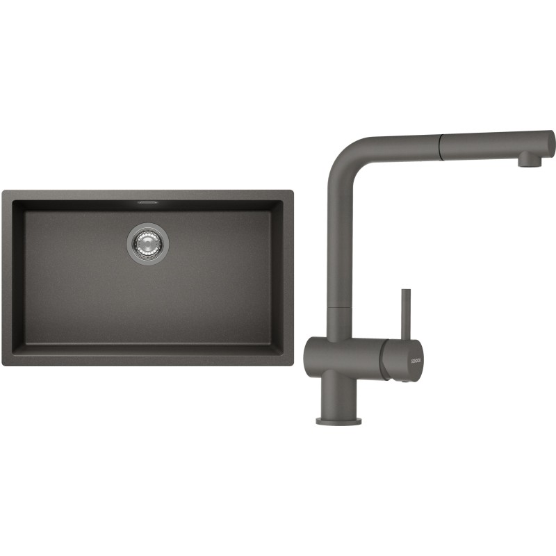 Cenově zvýhodněný set dřezu a baterie Schock S15-2 - obsahuje granitový jednodřez Kaia N-100XL Silverstone a baterii s vytahovací koncovkou Epos.120 Silverstone.