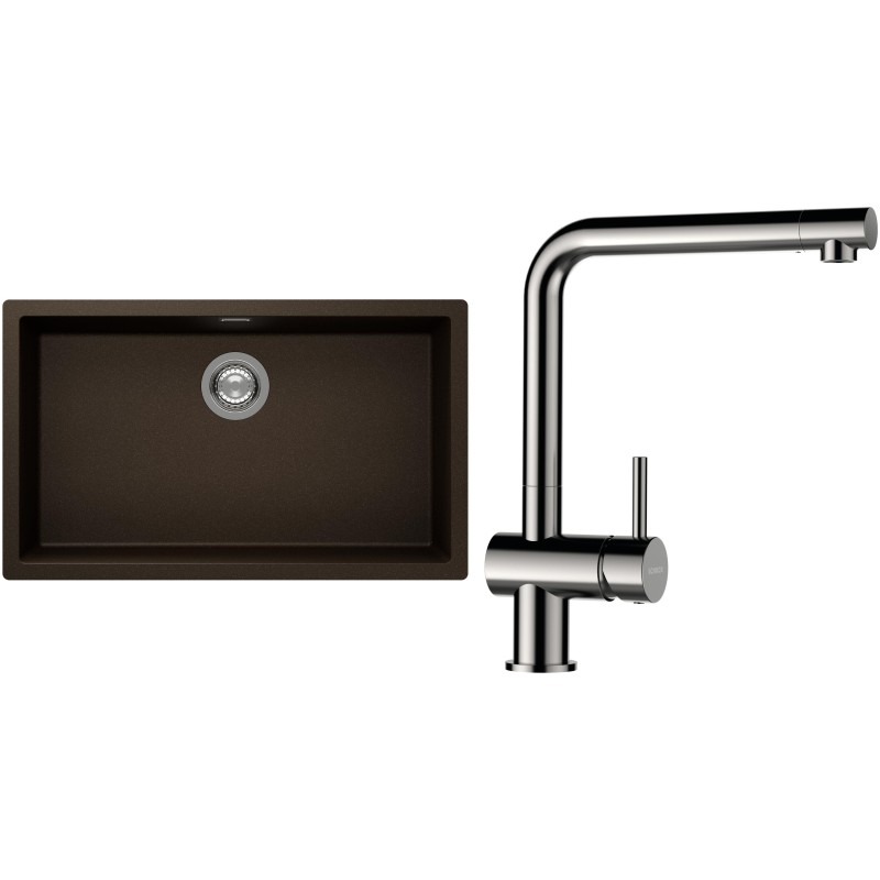 Cenově zvýhodněný set dřezu a baterie Schock S15-3 - obsahuje granitový jednodřez Kaia N-100XL Bronze a baterii Epos Nerezový vzhled.