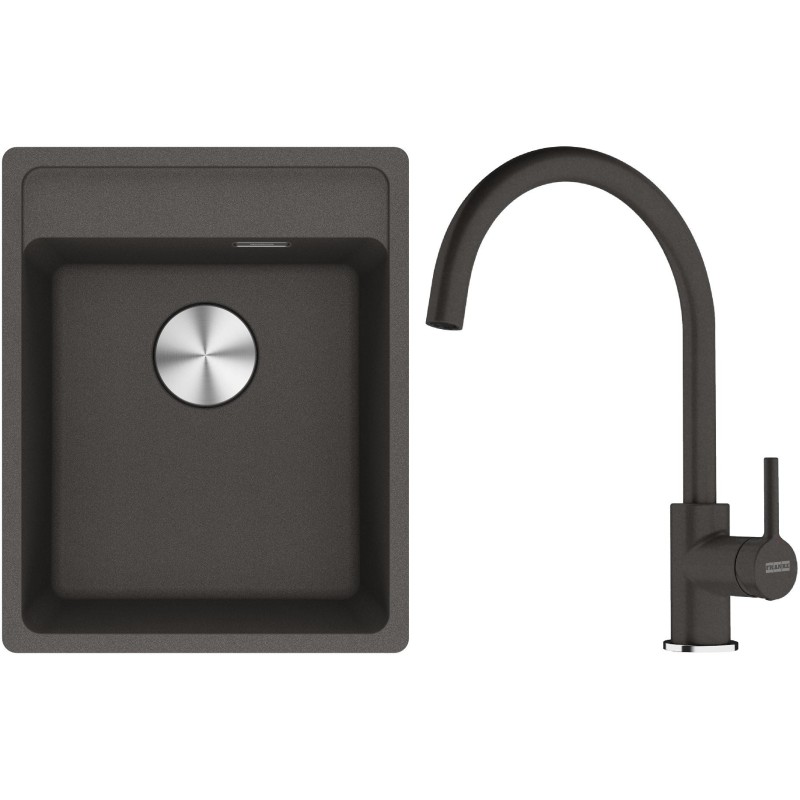 Cenově zvýhodněný set Franke G273ŠB obsahuje granitový dřez jednodřez MRG 610-37 RTL Šedá břidlice a baterii FC 6018.088 LINA Šedá břidlice.