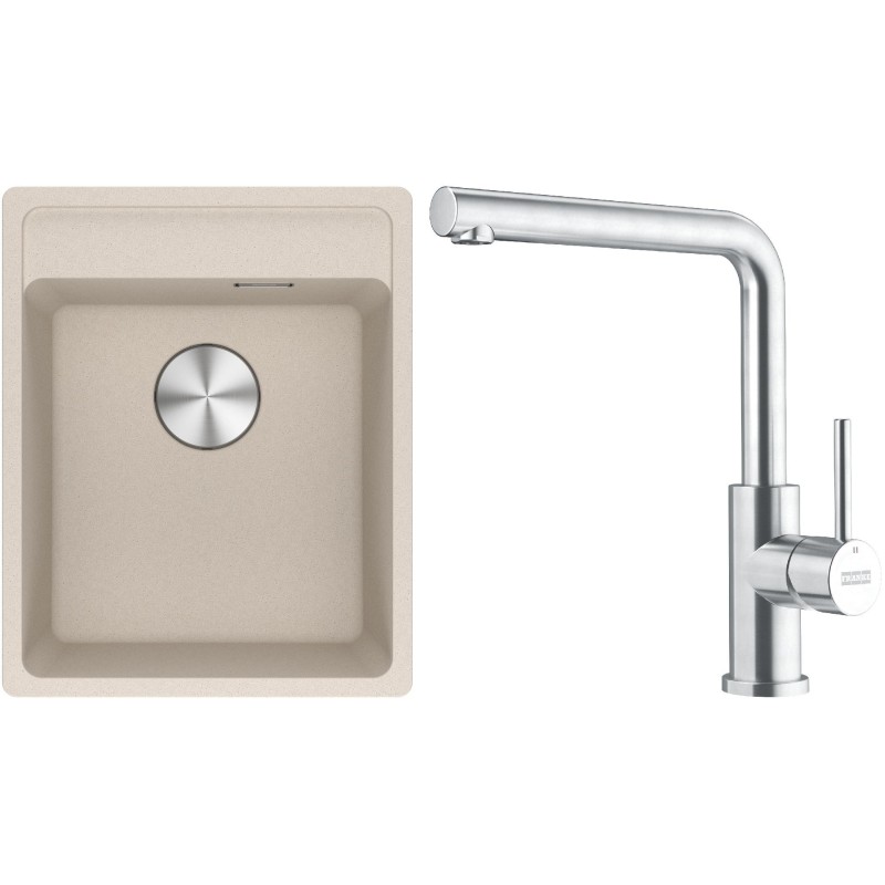 Cenově zvýhodněný set Franke G294SA obsahuje granitový dřez jednodřez MRG 610-37 RTL Sahara a baterii FC 6985.501 SMART GLENDA Celonerez.