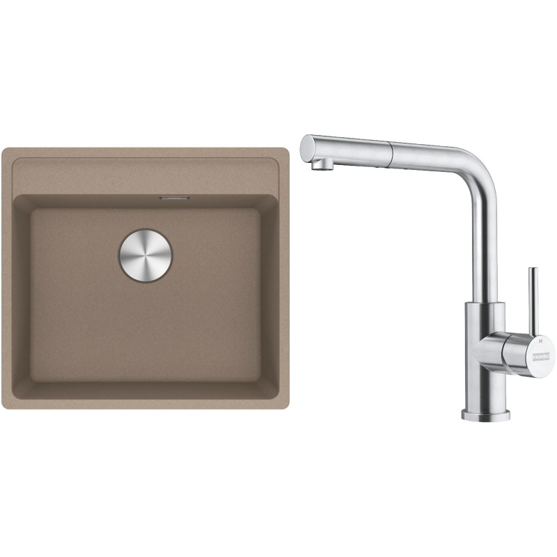 Cenově zvýhodněný set Franke G298KA obsahuje granitový dřez jednodřez MRG 610-52 RTL Kašmír a baterii s vytahovací koncovkou FC 6986.501 SMART GLENDA Celonerez.