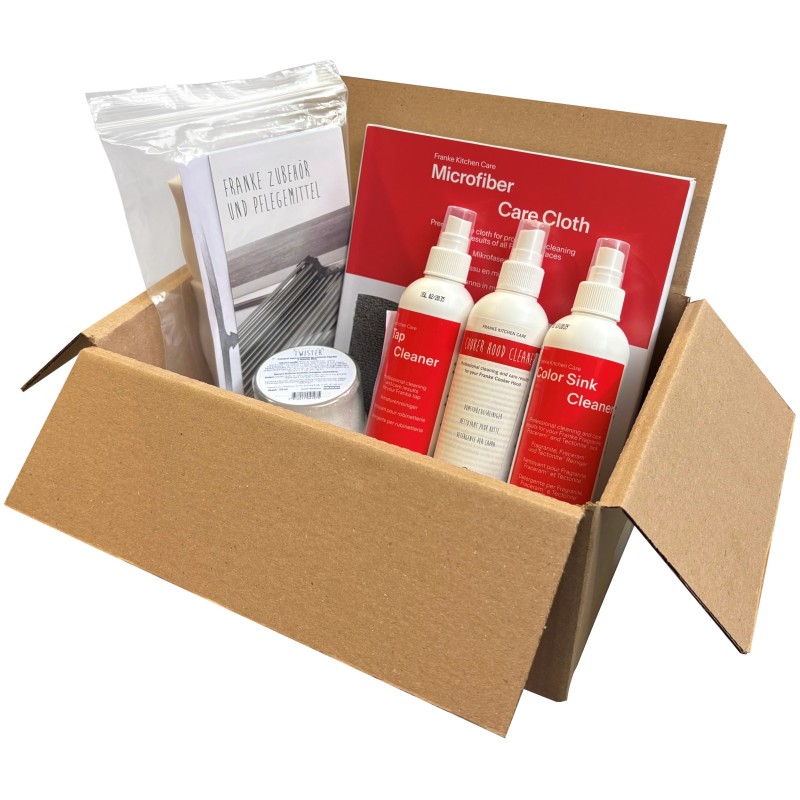 Set se vším potřebným pro udržení kuchyně v dokonalé čistotě. Sada obsahuje čistící pastu na nerez, speciální sprej pro granitové a Tectonite dřezy, čistič baterií a dávkovačů, sprej na odsavače par, sadu čistících houbiček Magic Sponge i univerzální hadřík z mikrovlákna. Ideální jako startovací set pro novou kuchyň nebo jako praktický dárek pro každého.