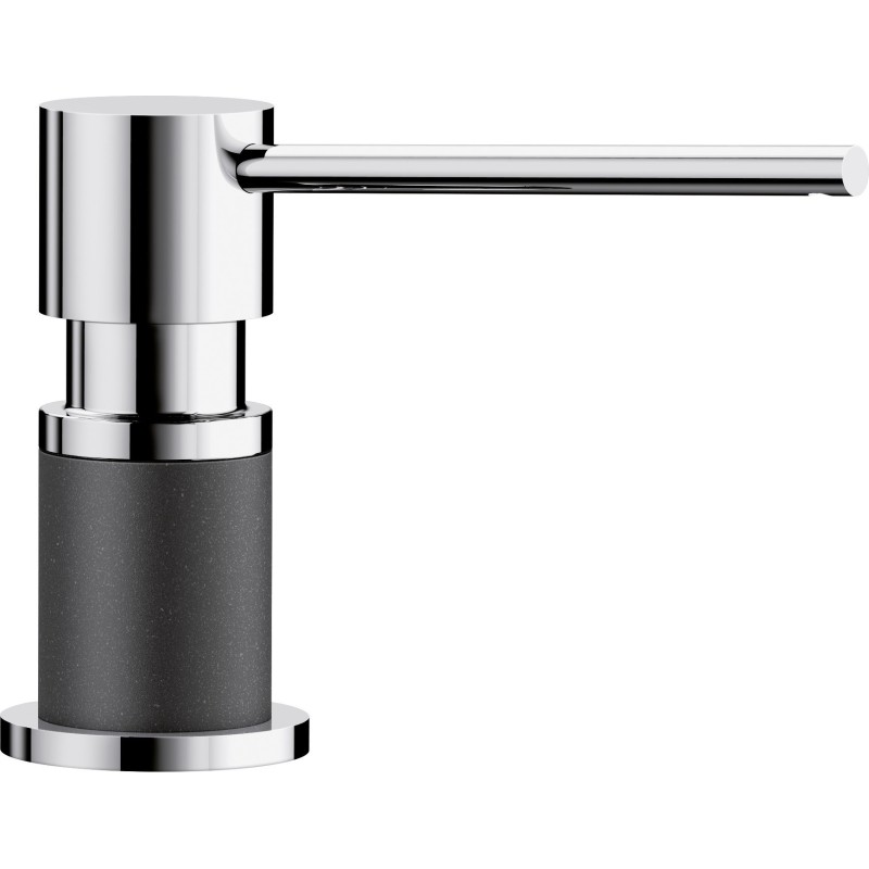 Dávkovač saponátu do kuchyňského dřezu, objem 300 ml, provedení Chrom/Antracit, vrchní plnění, standardní otvor 35 mm (stejný jako pro baterii).