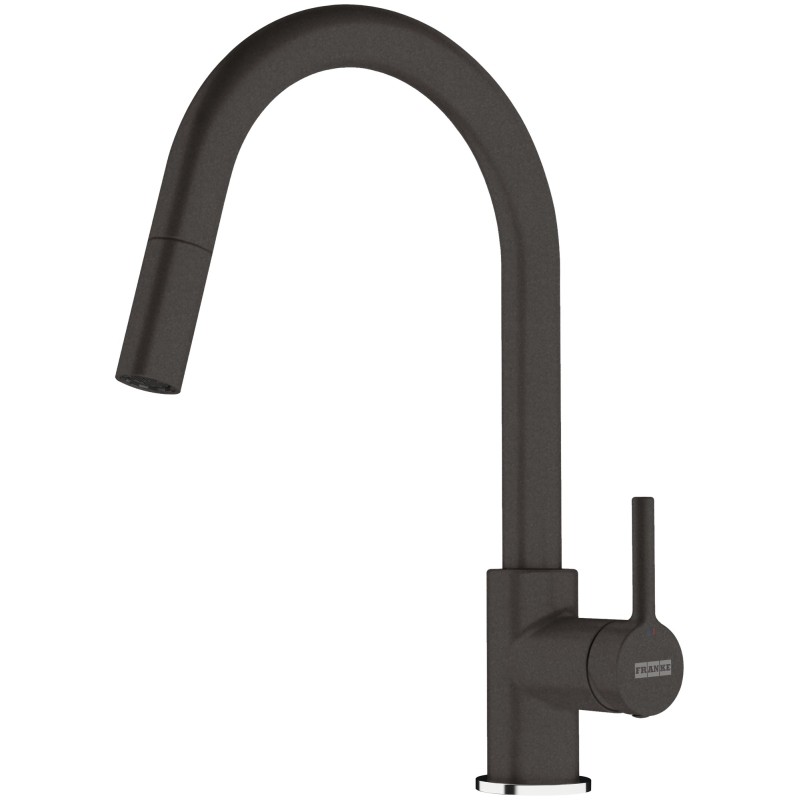 Stojánková dřezová baterie, provedení Šedá břidlice (nástřik), výška 360 mm, vytahovací koncovka s perlátorem, pro otvor 35 mm, otočná o 150 °.